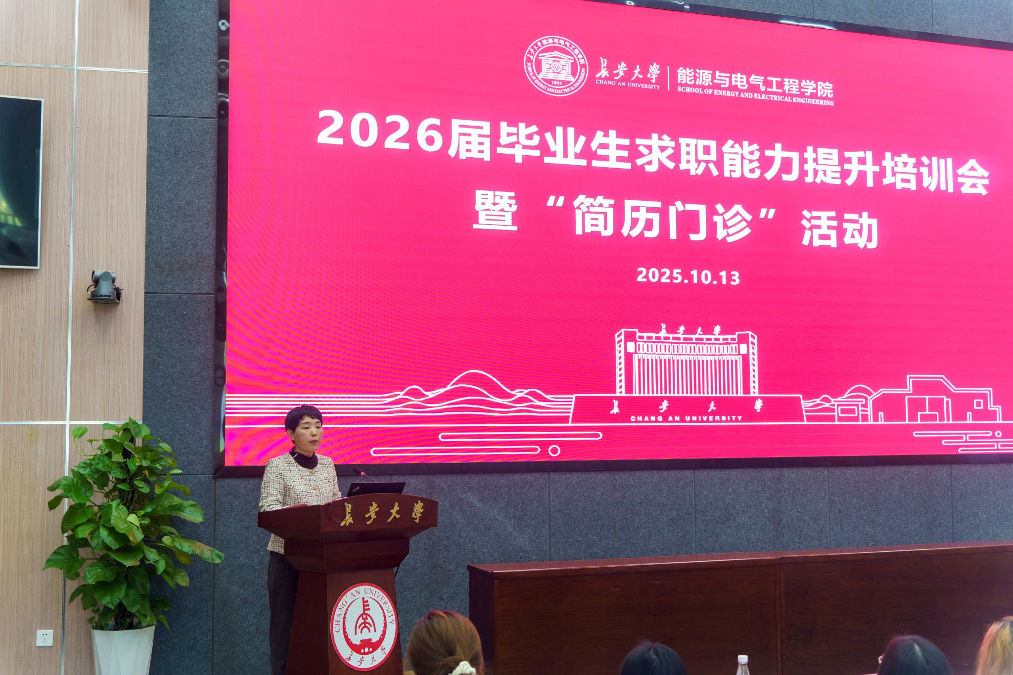 10月13日下午,能电学院在北校区师生服务大厅第二报告厅举办2026届毕业生求职能力提升培训会暨“简历门诊”活动。活动邀请中建三局基建投公司西北公司和心田花开(西安)培训中心两家用人单位参加。学院党委副书记、副院长、纪委书记倪凤英,思政班主任马博宇、韩啸,学生辅导员和处于求职期的100余名2026届本科和研究生共同参会。会议由学院学生工作办公室副主任刘泽主持。