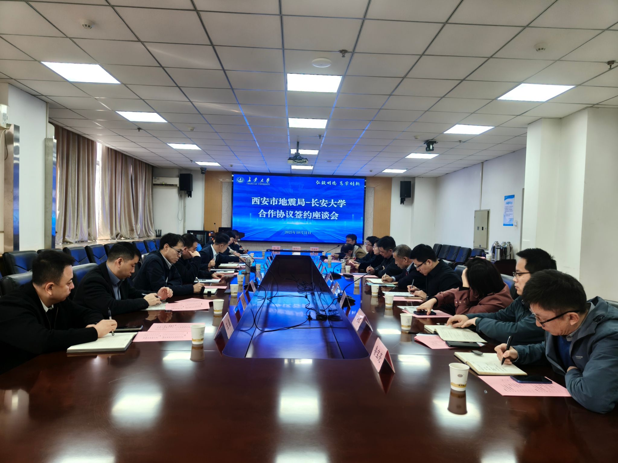 10月31日上午,西安市地震局与长安大学在地学大厦举行战略合作框架协议签约仪式。西安市地震局党组书记、局长任涛一行出席仪式,长安大学副校长、地质工程与测绘学院院长李振洪出席本次签约仪式及座谈会,我校相关单位代表及地质工程与测绘学院负责人参加会议。地质工程与测绘学院副院长朱武主持会议。